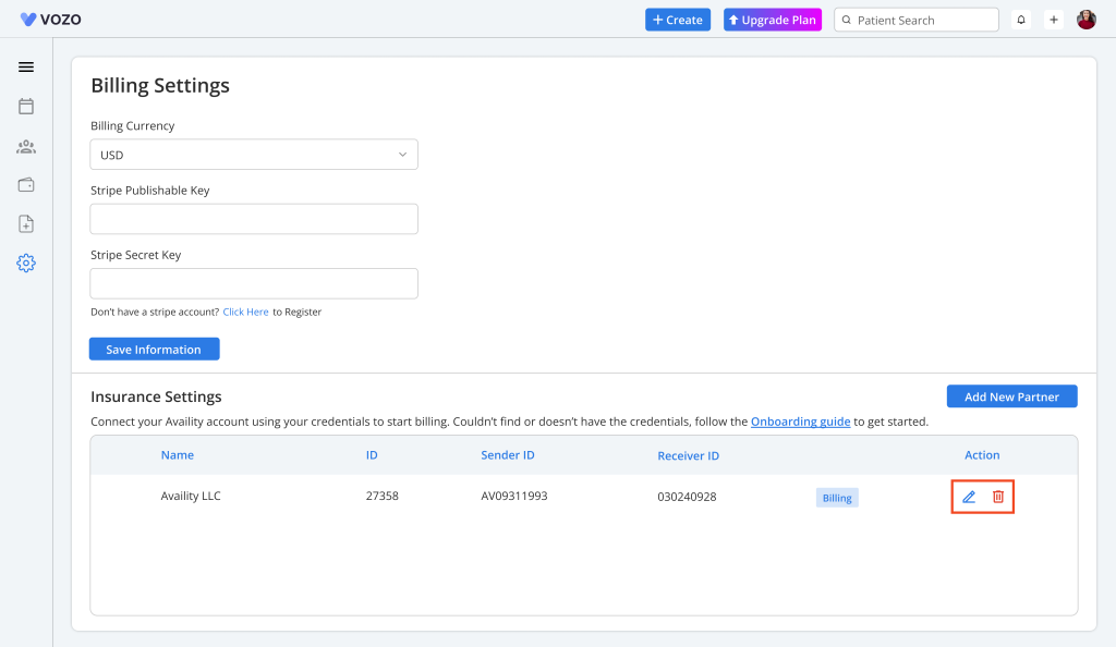 1. Click “Delete” icon to delete the insurance clearinghouse’s partner details.