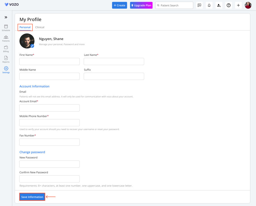 - After entering all this information, click on the “Save Information” button to save your profile.