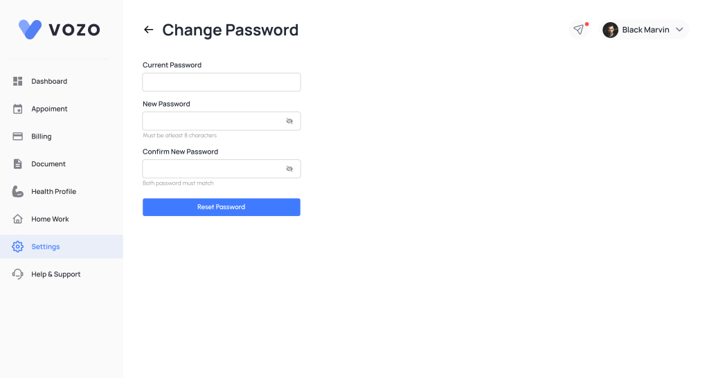 - Enter your current (old) password, then your new password, and confirm to save the change.